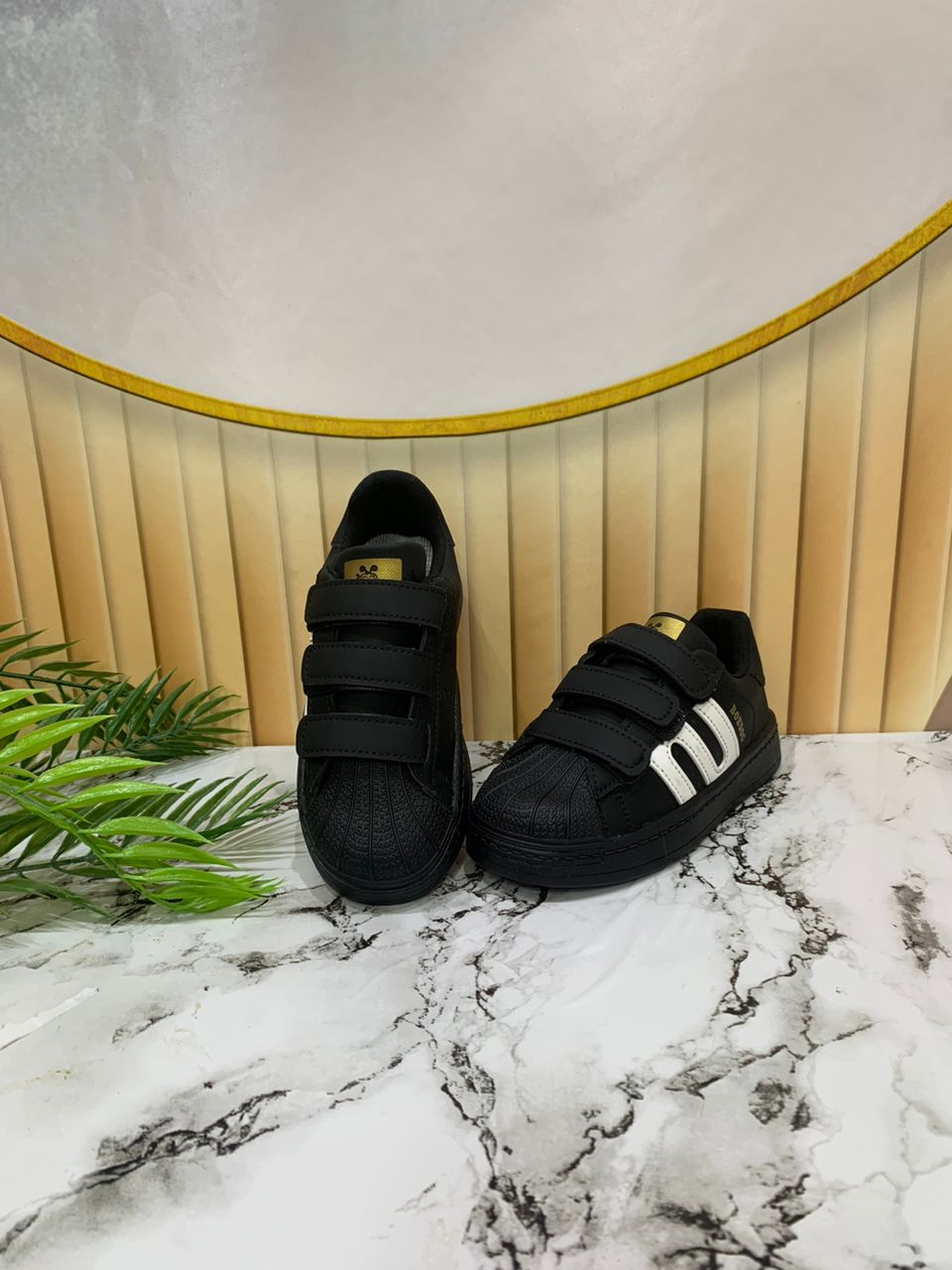 - Black children's sneakers with velcro straps