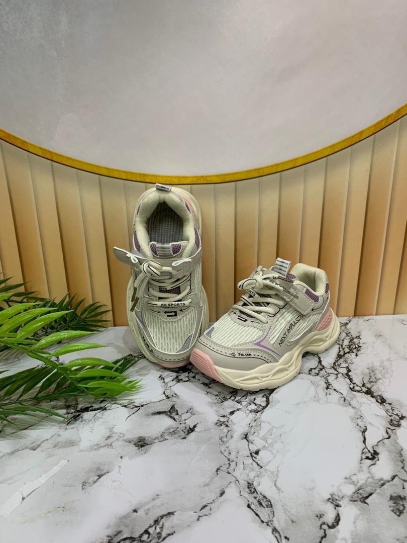 - Children's white and purple sneakers
