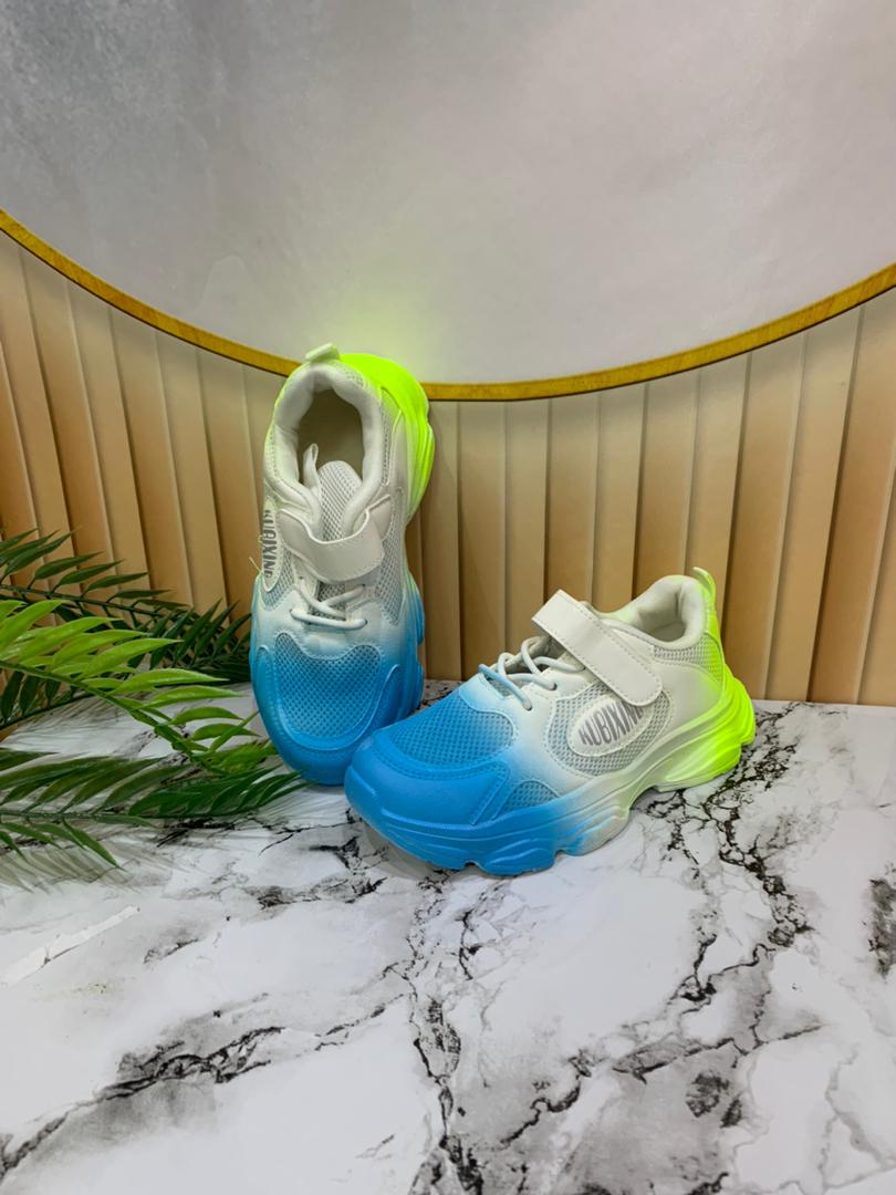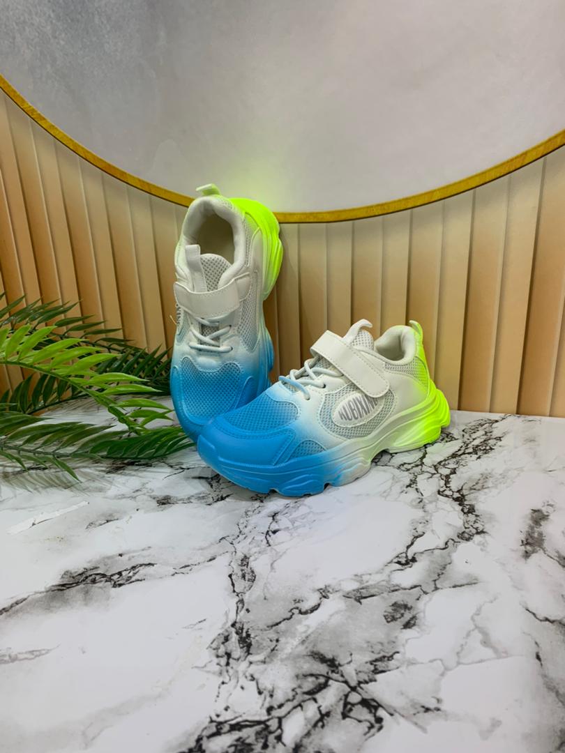 - Blue and green children's athletic shoes