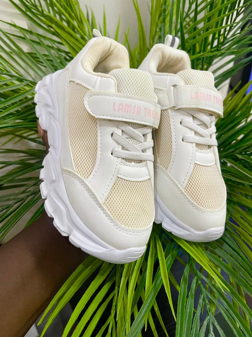 - Children's cream and pink chunky sneakers
