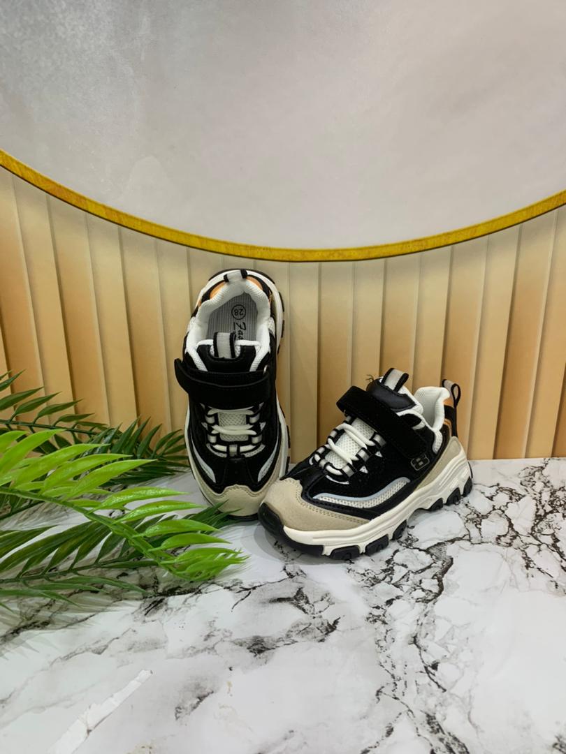 - Black and white toddler sneakers with chunky soles