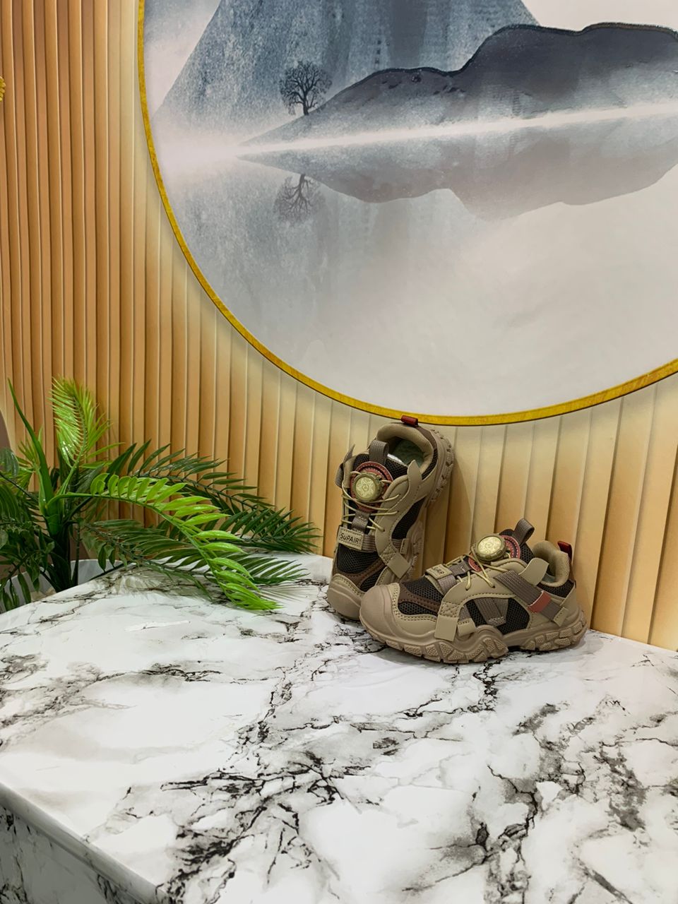 - Pair of beige children's outdoor shoes