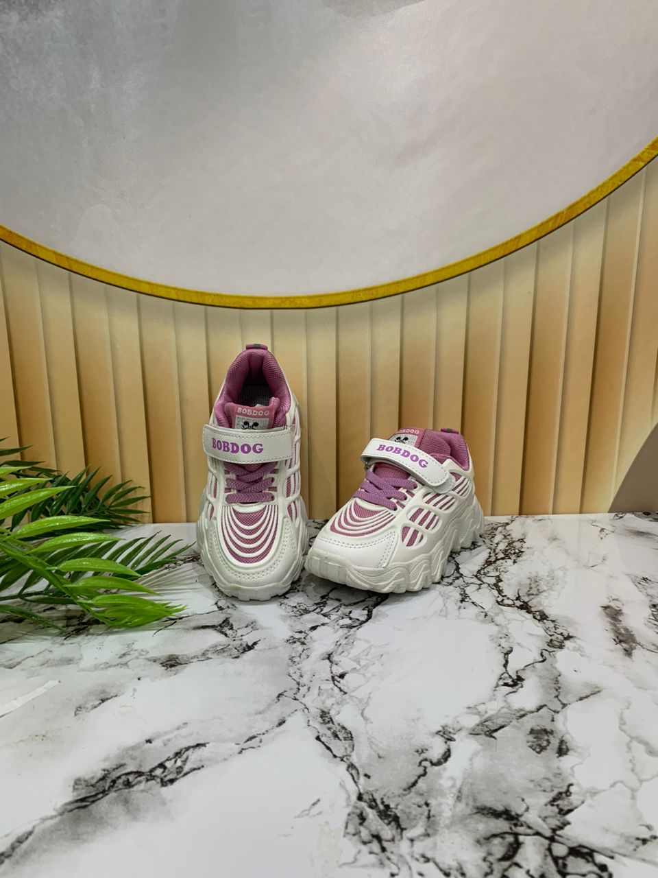 - Pink children's sneakers with Velcro